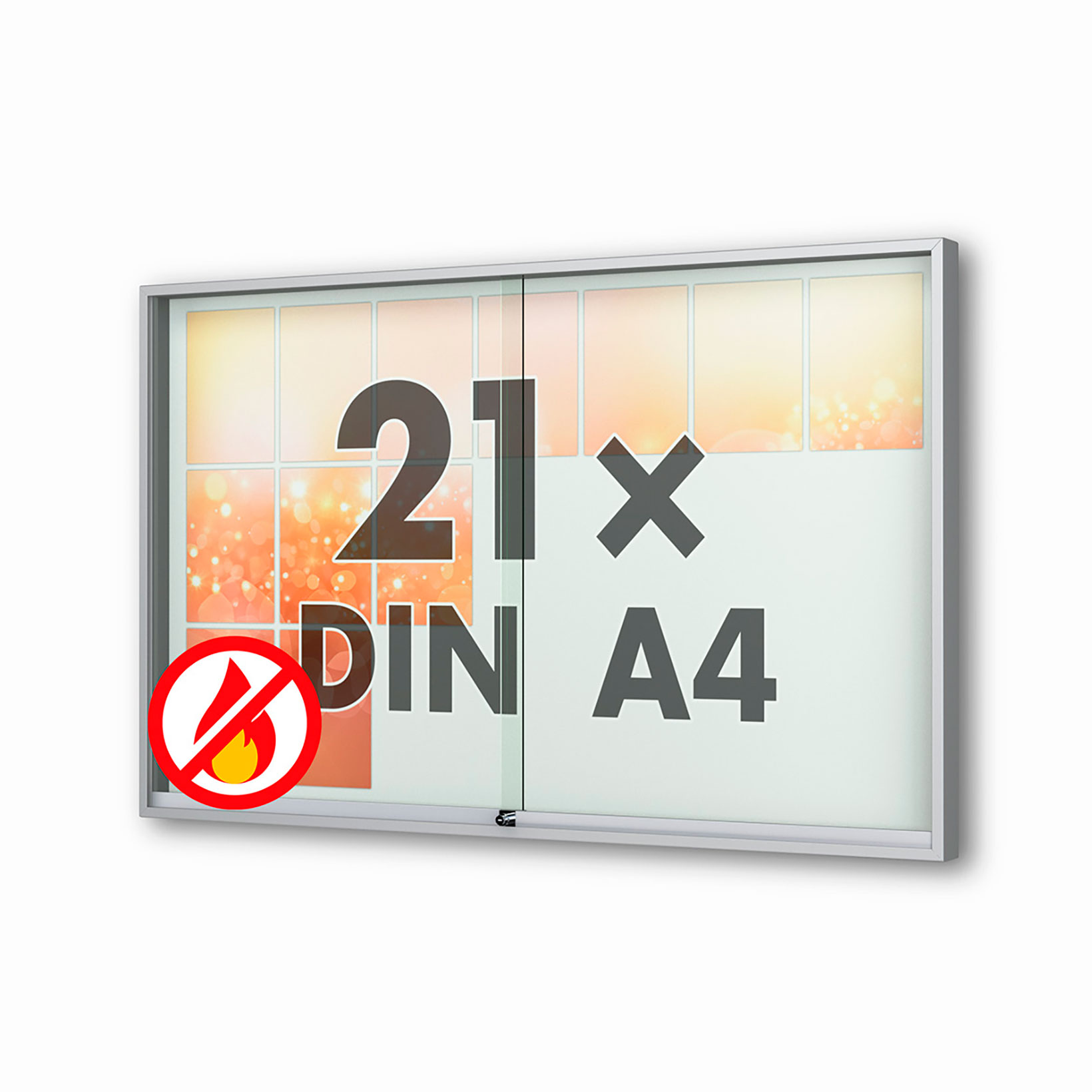 Plakatvitrine: | Brandschutz, Montageort: Innen, Wandmontage, abschliessbar, mit Schiebetüren |