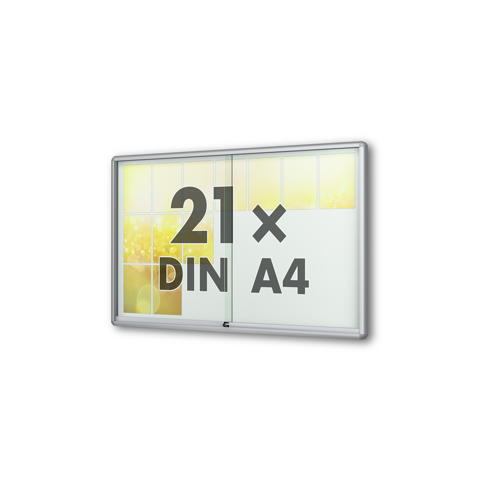 21 x DIN A4 Schaukasten Moveo - "die Schulvitrine" - mit Brandschutzklasse A1 - Rollengelagerte Schiebetüren✓ abschließbar✓ ESG-Sicherheitsglas✓